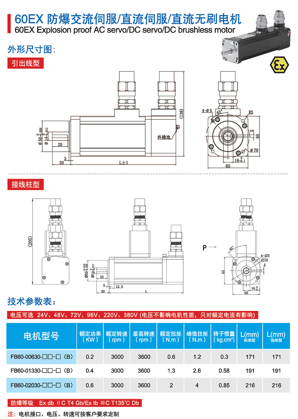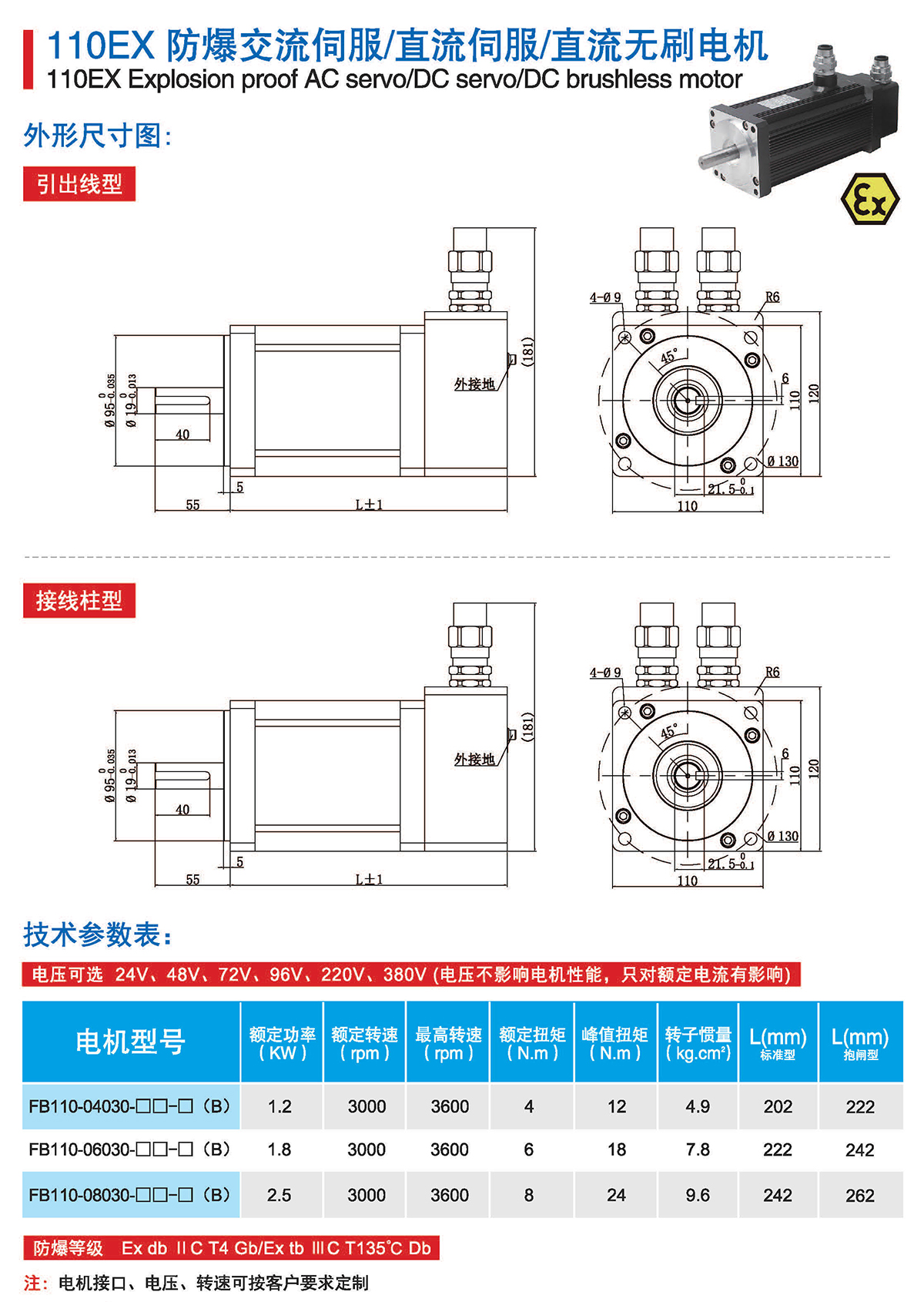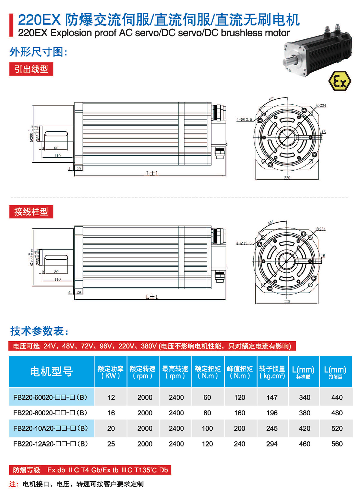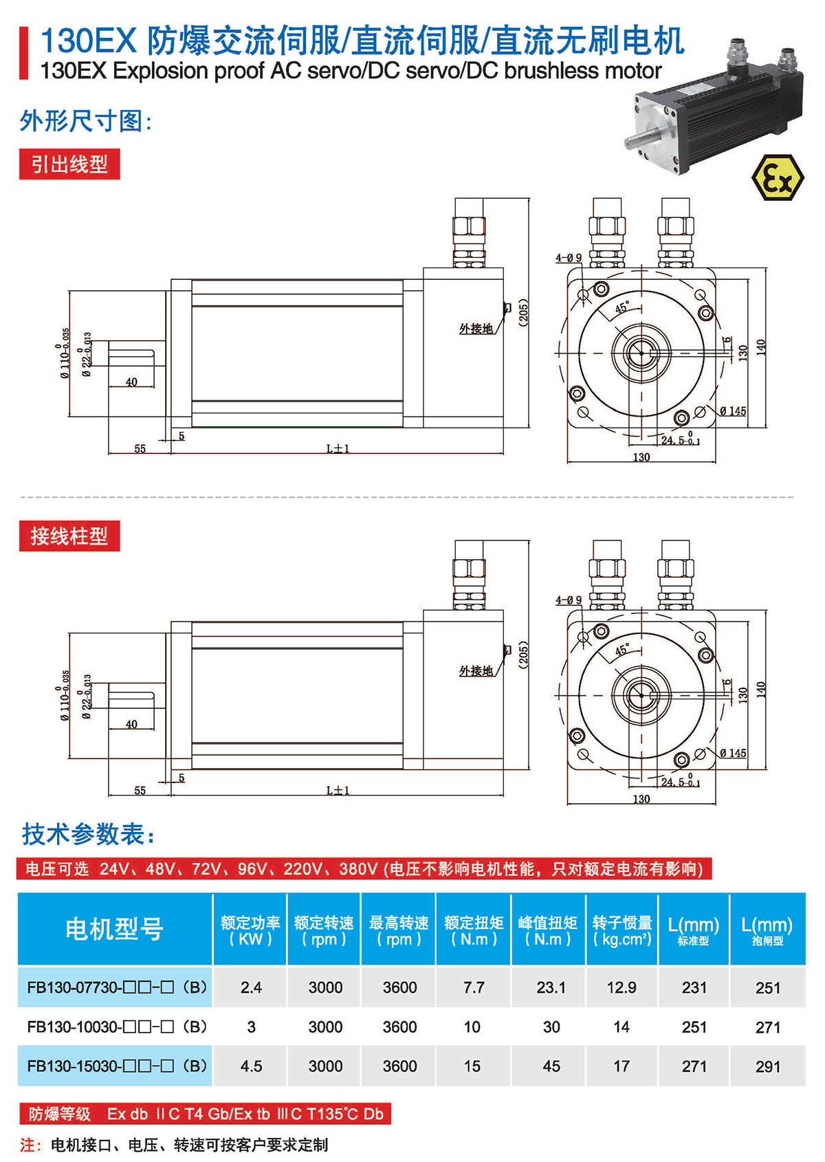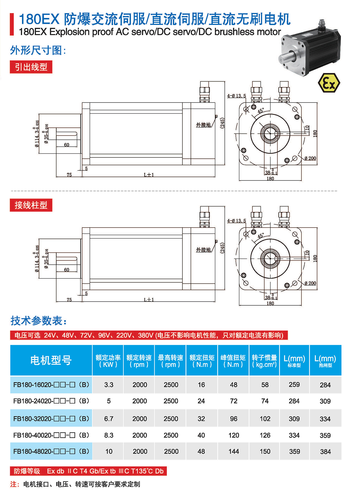 FB系列为气体1区、粉尘21区防爆伺服电机,FB系列防爆伺服电机地面防爆场景全适用,广泛 应用于油气、医药、喷涂、印刷等行业。严格按照防爆标准执行所有研发、设计和制造,为系统集成商 和设备制造商在防爆环境下的应用保驾护航。